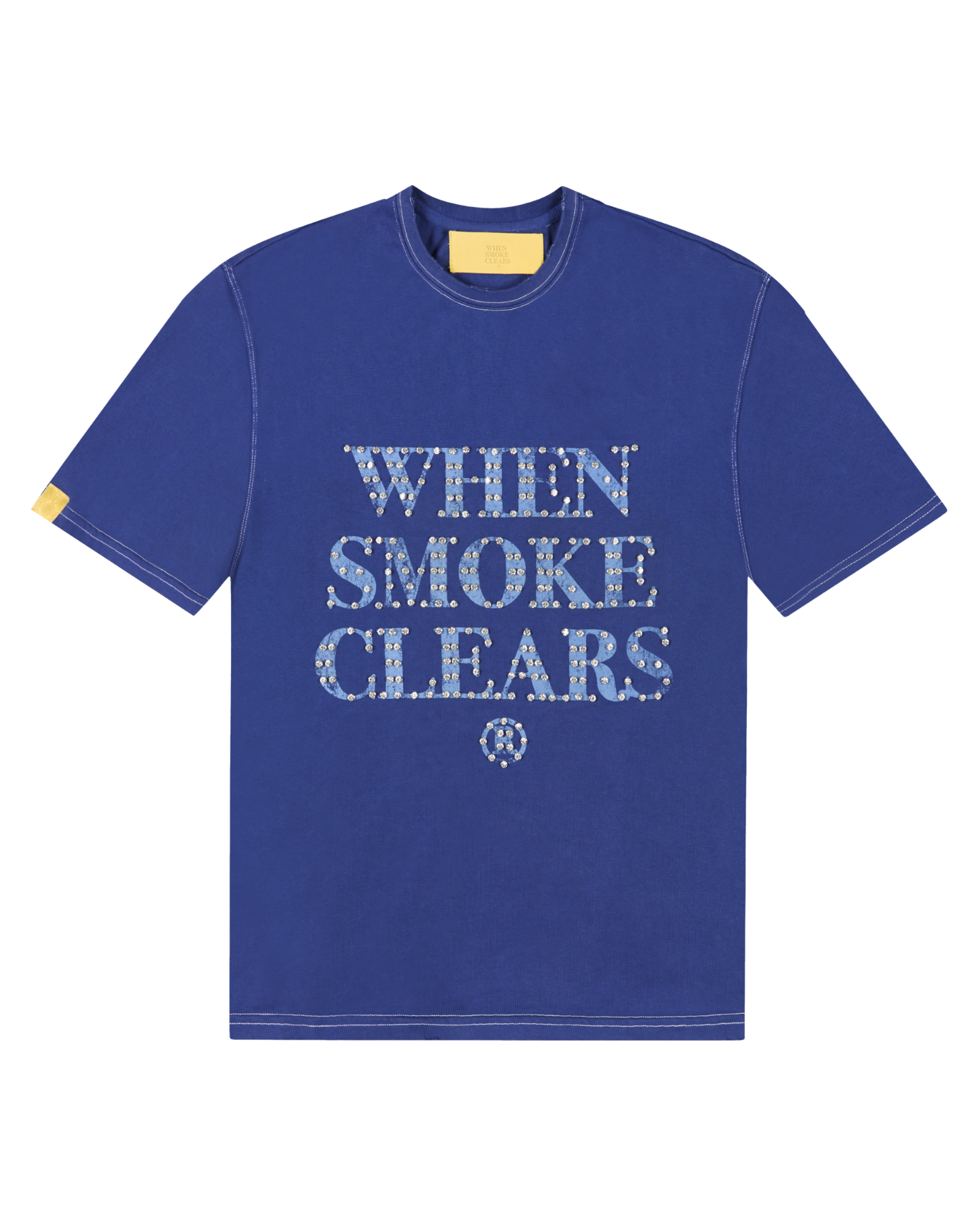 A 10oz french terry shirt featuring WSC® rhinestone graphic on front. Accented with a yellow WSC® tag on sleeve cuff.